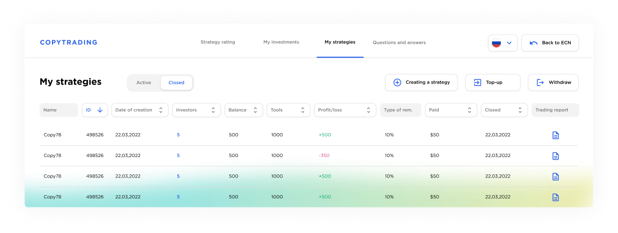 Ang serbisyo ng OnFin CopyTrading ay lalago pa at magiging mas kumportable araw-araw. Patuloy kaming nagtatrabaho para sa kalidad ng aming mga serbisyo. Kung mayroon kang anumang mga ideya, mga mungkahi at mga komento - huwag mag-atubiling ibahagi ang mga ito sa amin!